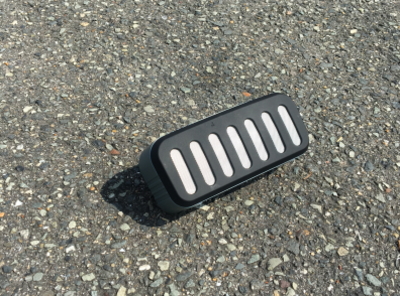 | 黒い足の部分に重しを入れます。 | 重し袋に水の入ったペットボトルを 入れているところ。 ペットボトルを水タンクに変えても OKです。 |